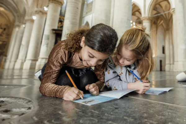 Ouders speuren gezellig mee, volgen van de gratis interactieve tours óf bekijken de collectie van de kerk met de gratis audiotour.