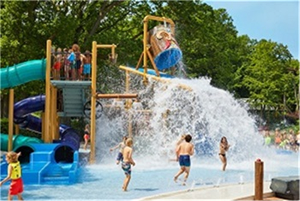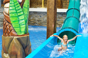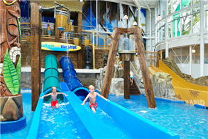 Superleuk: het overdekte kids waterpark Playa! Roetsj van de vier glijbanen, stap onder de mega waterval van de tipping bucket en beleef héél veel waterspeelplezier.