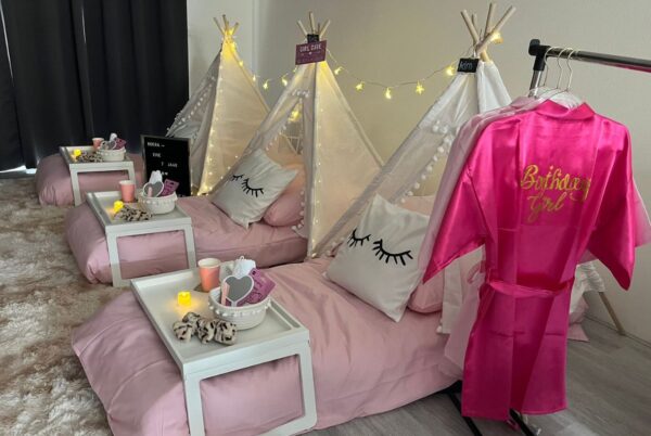Naast themakisten kun je hier ook terecht voor een compleet slaapfeestje. Je huurt een pakket met tentjes, matrassen, kussens en sfeervolle lichtjes. Zo verandert jullie woonkamer in een knusse slaapfeestjesplek voor junglefanaten, eenhoorn-fans of beauty queens.
