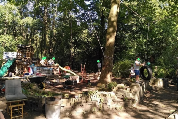 Dit is geen gewone speeltuin. Hier maken kinderen hun eigen speelplek met losse materialen en natuurlijke elementen. Denk aan boomstammen, touwen en zelfs een oude caravan. Je ziet ze meteen opgaan in hun spel, vol ideeën (en een beetje lef!).