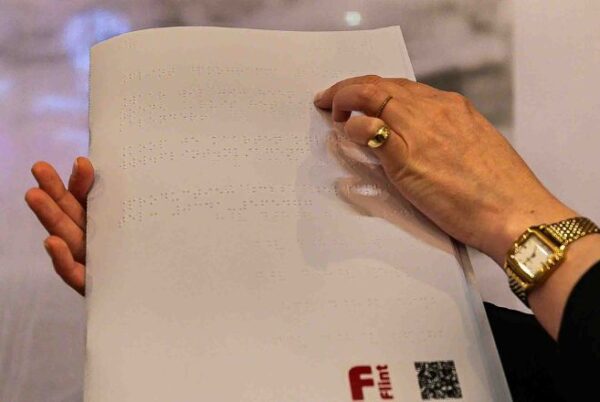 Flint Theater Amersfoort introduceert als eerste theater in Nederland een brailleflyer voor bezoekers met een visuele beperking. Deze speciaal ontwikkelde flyer maakt het voor bezoekers met een visuele beperking eenvoudiger om zelfstandig informatie te vinden over voorstellingen (met of zonder blindentolk), faciliteiten en toegankelijkheidsvoorzieningen.