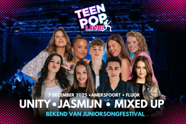 Tijdens deze speciale editie van Teen Pop LIVE! staan de sterren bekend van het Junior Songfestival – UNITY, Jasmijn en Mixed Up – voor het eerst samen met een swingende liveband op het podium.
