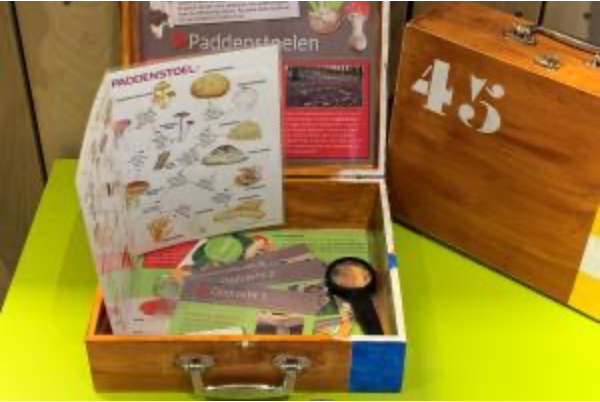 Het koffertje bevat de opdrachten, leuke weetjes, informatie, een spiegeltje en een vergrootglas waarmee de kinderen de paddenstoelen mee kunnen onderzoeken. Op deze manier leren ze spelenderwijze over de verschillende soorten zwammen die er zijn. Super leuk!