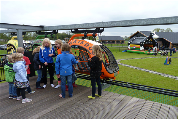 Buiten kun je vliegen in de helikopters, een ritje maken in de treintjes, skelter rijden, op de trampoline of het springkussen springen, spelen met water en zand en nog heel veel meer!