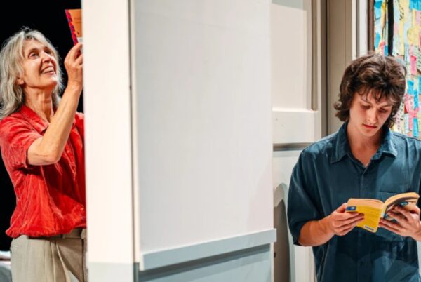 Op het toneel zie je twee huiskamers die draaien. In de ene staat een jongen tussen verhuisdozen, zoekend naar wat komt. In de andere zit een oudere vrouw, omringd door herinneringen.