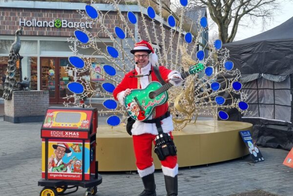 De Zingende Kerstman zorgt samen met andere acts voor extra vrolijkheid tijdens je bezoek.
