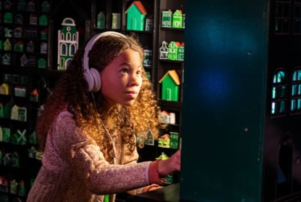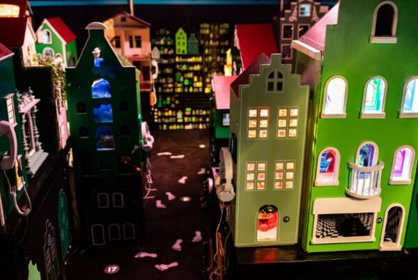 Zodra je op je sokken binnenstapt, betreed je een magische miniatuurstad van 35 poppenhuizen vol kamers, elk met een eigen verhaal. Een fantasierijke wereld vol kijkdozen, diorama’s, animaties en stop-motions om te zien én te beluisteren.