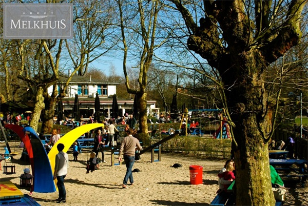 Het Groot Melkhuis vind je in het Vondelpark in Amsterdam. Het is een authentieke zelfservice met een grote speeltuin en terras aan het water. Wanneer het weer wat minder is, kun je in het Grand Café zitten. In de winter brand de open haard hier de hele dag.