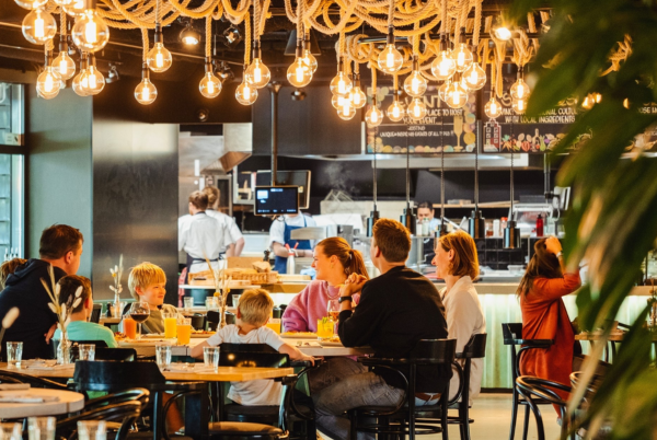 Voor de kids heeft dit restaurant leuke opties voor eindeloos speelvermaak. Ze kunnen spelen in de game room met kinderarcademachines en tafelvoetbal, zich uitleven met reuzen-Jenga en boeken ontdekken in de bibliotheek, of gezellig aan tafel zitten met een leuke kleurplaat.