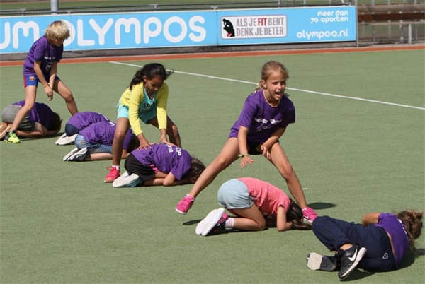 Elke dag wordt er gestart met een dansje samen met de grote vriend APIE!. Hierna gaan de kids het veld of de gymzaal in om een sport te ontdekken. Denk bijvoorbeeld aan voetbal of hockey maar ook aan Rugby, Tennis of Judo!