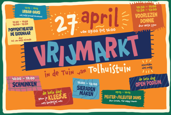 Vier Koningsdag met een gezellige vrijmarkt en een uitgebreid kinderprogramma in de Tuin van Tolhuistuin