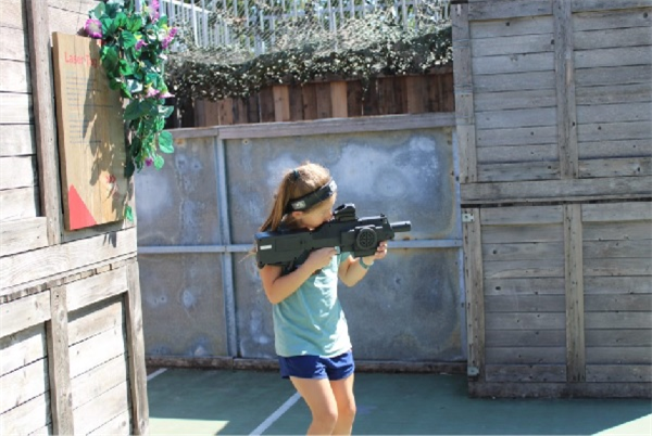 Het lasergamen speelt zich af bij in een supertoffe lasergame arena. In deze arena bevinden zich diverse objecten waar je je achter kan verschansen en verschuilen. Ga je snipen of ren je de aanval in? Aan jullie de taak om het rode of het blauwe team kampioen te maken! Wie gaat er naar huis met de Victory Royale?