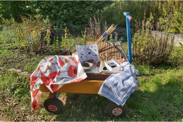 Een feestelijke bolderkar vol (natuur)activiteiten. Alles wat je nodig hebt voor een leuk kinderfeestje: materialen, een picknickmand met tafelkleed, bordjes, bekertjes en vlaggetjes.
