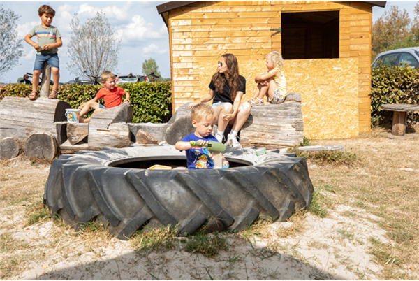 Voor de kids is er buiten een speelhuisje met schommels en glijbaan, een zandbak in trekkerband en een hele toffe boomstam-trein. Binnen is er een speelhoekje en in het museum mogen de kids op de echte trekker!