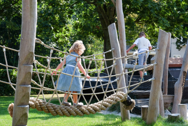 De speeltuin ligt in het groen en is onlangs uitgebreid. Daardoor is het een nog leukere plek geworden om samen neer te strijken voor een ontspannen middag.