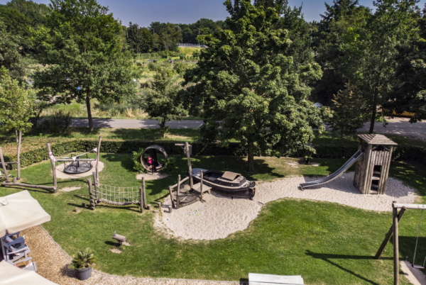 Op het ruime terras kijk je uit op de grote speeltuin. Terwijl jullie genieten van koffie, lunch, borrel of diner, rennen kinderen meteen richting de glijbanen en klimtoestellen (zo fijn dat je ze gewoon in het zicht houdt!).