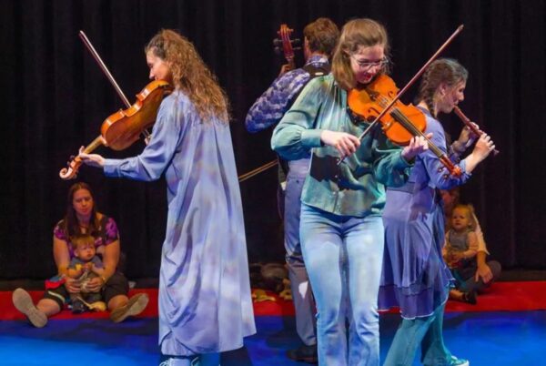 De baby’s (0 tot 18 maanden) wiebelen en wiegen op de vrolijke en rustgevende klanken van de live muziek. Krulmuziek trakteert de baby’s op betoverende klanken, om daarna met de kleine en grote mensen samen te zwieren met een draagdans. Je baby speelt met een rammelaar mee op de vrolijke vioolmuziek en mag tijdens het concert dichtbij de muzikanten kruipen of genieten op schoot bij papa of mama.