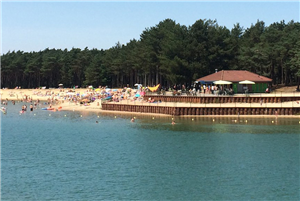 Spelen op het strand en zwemmen in natuurwater van de Zandenplas in Nunspeet