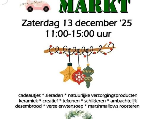 Op zaterdag 13 december verandert De Fruitben in een vrolijke kerstmarkt. Je vindt er kraampjes vol cadeautjes, sieraden en creatieve spullen. Kinderen kijken hun ogen uit bij alle knutseldingen en lekkernijen.