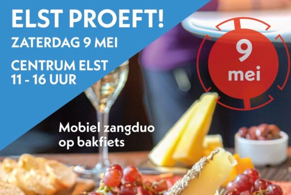 Klik op de roze button en bekijk alle info over Elst Proeft op 9 mei!