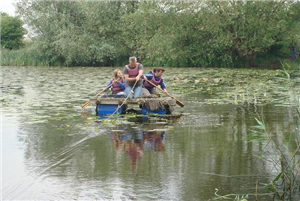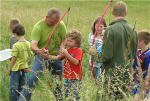 Je start met een kaart- en kompastocht door natuurgebied Rijnstrangen van ongeveer 2 km. Tijdens deze tocht steek je met een vlot een meertje over en gaan je boogschieten!