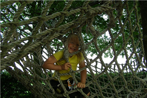 Daarna de hindernis- en hoogtebaan met als klapper een tokkelafdaling over het water van wel 60 meter!