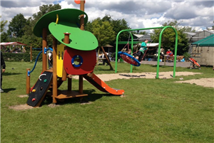 Bij de ingang van de tuinen is een mooie, grote speeltuin. Hier kunnen kinderen van verschillende leeftijden heerlijk spelen. Er is een grote en kleine glijbaan, schommel, trampoline, wip-wap, wipkip en een klimrek. De ouders of begeleiders kunnen er lekker aan de picknicktafels genieten van een drankje terwijl ze ondertussen de kinderen in het oog kunnen houden.