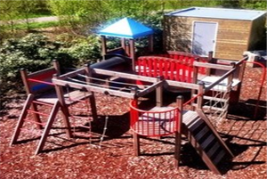 Er staat een groot speeltoestel aan de bos-zijde van het terras waar de kids fijn kunnen spelen terwijl jij geniet van een hapje en een drankje.