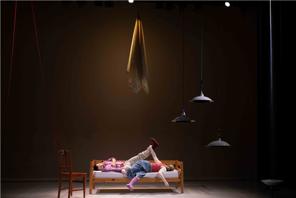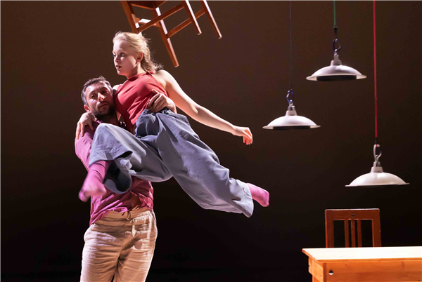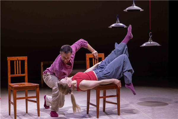 Twee dansers, twee stoelen, een tafel en een bed maken de huiselijke wereld compleet. Met een vleugje Louis Davids: ‘Je verbeeldt je dat je aan de touwtjes trekt, maar och, het leven smijt je heen en weer..’