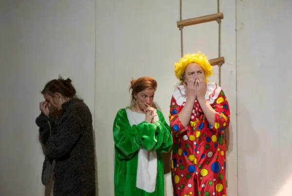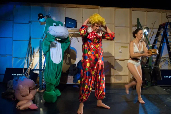 Kinderen nemen plaats in het rode pluche en krijgen een hoogwaardige, filosofische slapstickshow voorgeschoteld over wat een volwassene nu eigenlijk precies is. Aan de andere kant van de muur, backstage, moeten de volwassenen met man en macht assisteren om de voorstelling voor de kinderen in goede banen te leiden, onder het genot van wat volwassen vermaak zoals een rood wijntje en wat functioneel naakt.