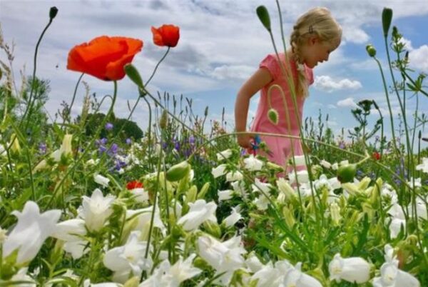 Blauwe, witte bloemetjes, margrietjes, lelies elk jaar bloeien er weer andere bloemen. Geniet van de rust en de natuur en pluk ondertussen je hele emmer vol. Het er prachtig!