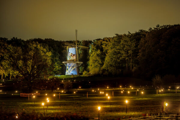 Alléén in de herfstvakantie kun je ’s avonds in het Openluchtmuseum een route van 2 km lopen. De nachtwaker vertelt tijdens deze lichtwandeling verhalen van vroeger die met lichtprojecties en geluidseffecten tot leven komen. Reserveer tijdig je tijdslot.
