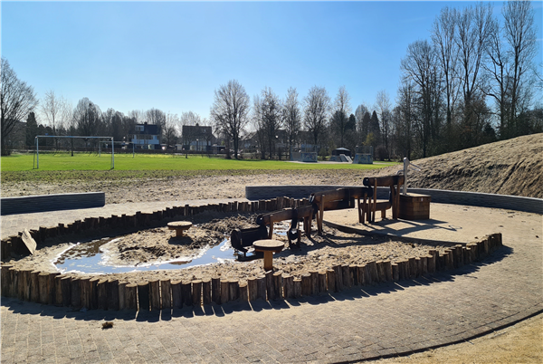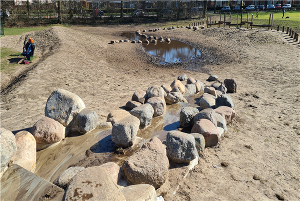 Bij Natuurspeeltuin Vught kunnen de kids lekker kliederen met zand en water met de verschillende waterbanen.