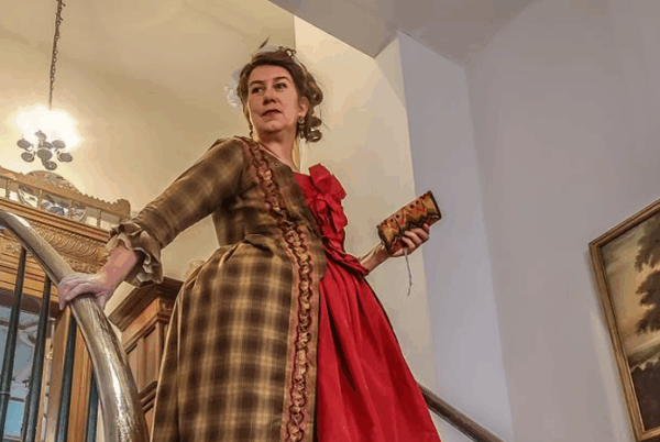Onderweg kom je de historische schrijver tegen die zijn indrukken noteert. Ook zie je de borduurder aan het werk: fijn handwerk, toffe patronen, veel te ontdekken!