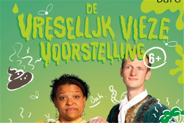 Sabrina en Dennie wassen netjes hun handen, checken hun schoenen op hondenpoep en springen echt niet in de modder voordat ze in hun kostuum stappen. Zij spelen vandaag De Vreselijk Vieze Voorstelling. Of, nou ja, dat proberen ze. Met wasknijpers om hun neus en Mr. Muscle in de aanslag openen ze weifelend het script. Maar hoe proper zij ook beginnen, het is de vraag of zij zonder remsporen uit deze supersmerige show komen…