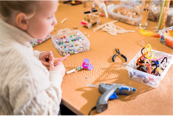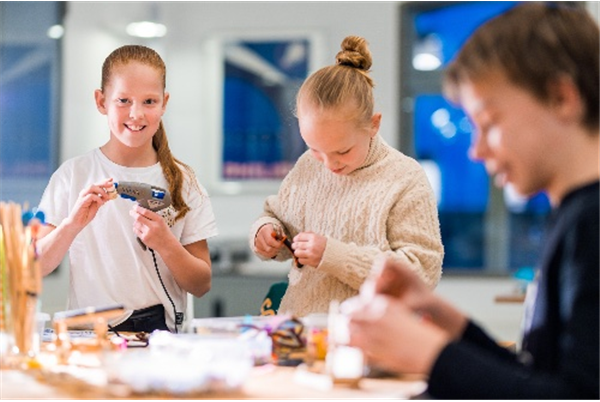 De jongere kinderen (6 en 7 jaar) mogen knutselen met diverse materialen en lijmpistool. De oudere kinderen (8 t/m 12 jaar) mogen bovendien solderen, zagen en boren.