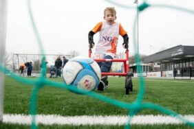 Op meerdere locaties zorgt de KNVB voor voetbalmogelijkheden voor kinderen in een rolstoel.Dierenpark Zie-Zoo