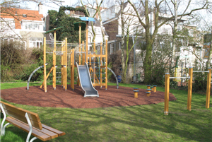Het schijnt de oudste speeltuin van Den Haag te zijn. En je moet misschien een beetje zoeken. De speeltuin ligt namelijk in een soort hofje.