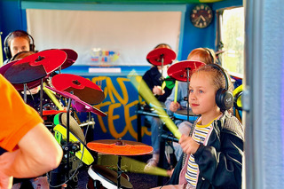 De enthousiaste Djesse komt met zijn stoere Drumcaravan gewoon naar jullie toe. Binnen tien minuten staat alles klaar en kunnen de kinderen samen drummen, lachen en genieten van een muzikale middag.