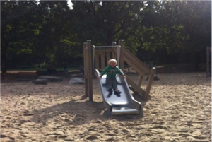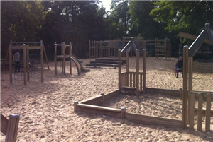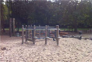 Kom spelen in de speeltuin in de Bosjes van Pex. Mooie natuurlijke speeltoestellen en fijne zitplekken.