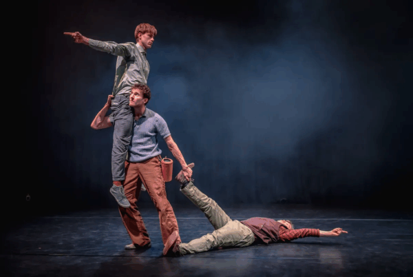 Twee acrobaten en een muzikant nemen je mee in een wereld van klimmen, stapelen, struikelen en elkaar (net) niet laten vallen. Speels, spannend en super knap.