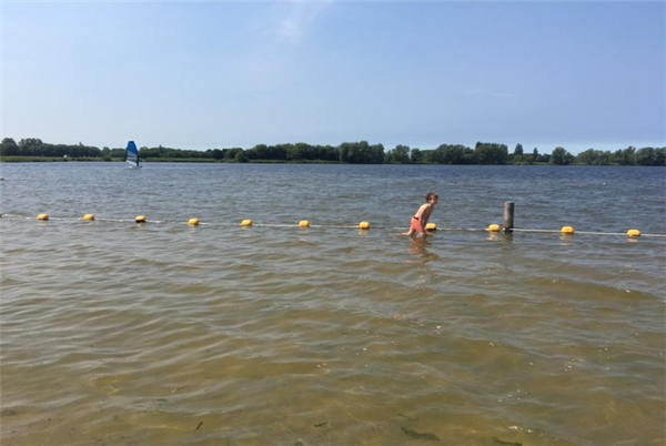 Zeker met kleine kinderen is het Valkenburgsemeer een fijne zwemplek vanwege het ondiepe water.