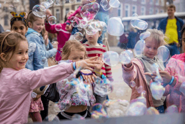 Overal is iets extra’s te doen: creatieve workshops, verrassende optredens en uitdagende opdrachten. Zo leren kinderen op een speelse manier over kunst, cultuur en alles wat er in de stad te zien is. Heb je daarna nog energie over? Kom dan nog even dansen op de afterparty!