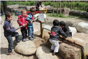Een waterspeelgreppel, waterpomp, boomstammenroute en een wilgentunnel zorgen voor veel speelplezier!