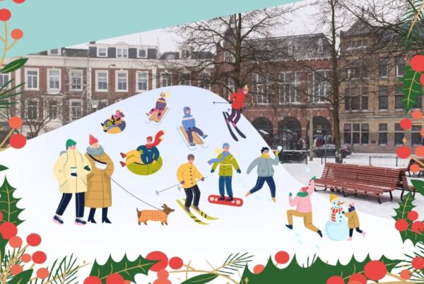 Drie dagen winterpret op het Prins Hendrikplein met echte sneeuw, sleetjes en gezelligheid.