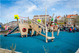 Wat een leuke speeltuin zo vlakbij de Scheveningse haven. Met piratenschip, schommelboot en meer!