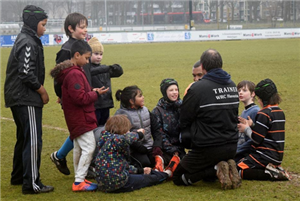 Het is een fysieke sport, maar zeker niet hard. Je leert omgaan met de tegenstander en met de grond! Want rugbyspelers kunnen wel tegen een stootje.