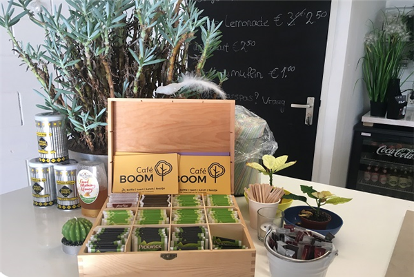 Café Boom is een nieuwerwets, gezellig café in het Zuiderpark bij het Zuiderparktheater. Binnen is het gezellig en het heeft een gedeeltelijk overdekt terras en een mooi uitzicht op de het park, de vijver en de ganzen!