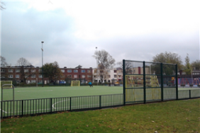 Zeer uitgebreide playground met niet alleen een grote speeltuin, maar ook met verschillende sportvelden.