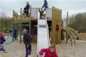 Kom lekker in het zand spelen, klimmen, klauteren, schommelen en glijden. Dat wordt leuk!